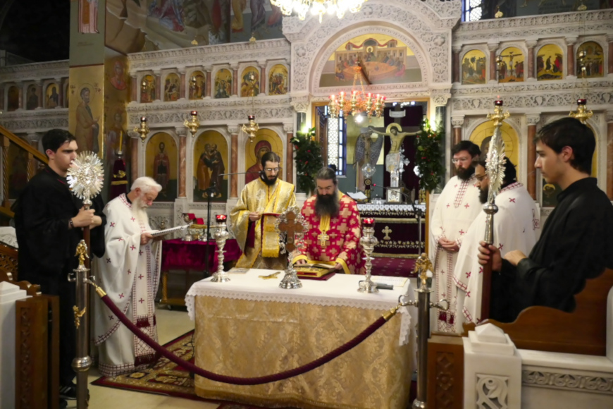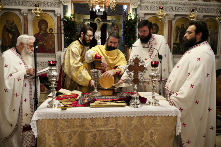 Όπως κάθε χρόνο έτσι και φέτος, στις 26 Δεκεμβρίου, εορτή της σύναξης της Υπεραγίας Θεοτόκου, τελέστηκε στον Ιερό ναό μας η αρχαιοπρεπής Θεία Λειτουργία του Αγίου Ιακώβου του αδελφοθέου. Ιδιάζουσα σημασία δίνεται στο γεγονός ότι η συγκεκριμένη Θεία Λειτουργία τελείται έξω από το Ιερό Βήμα, επάνω στο «σολέα», στο τέλος της οποίας οι πιστοί κοινωνούν ξεχωριστά το σώμα και το αίμα του Χριστού. Της Θείας Λειτουργίας προεξείρχε ο Πανοσιολογιώτατος Αρχιμ. π. Γρηγόριος Λιέπουρης, ιερατικός προϊστάμενος του Μητροπολιτικού Ιερού Ναού Αγίου Δημητρίου Κηφισιάς, πλαισιωμένος από τους ιερείς του ναού μας και τον διάκονο της μητροπόλεως π. Ιάκωβο Χρόνη. Παρ’ όλη την κακοκαιρία και την κούραση των ημερών, η προσέλευση των πιστών ήταν συγκινητική αφού γέμισαν το ναό και πολλοί εξ αυτών κοινώνησαν των Αχράντων Μυστηρίων. Στο τέλος προσφέρθηκε σε όλους κέρασμα το οποίο είχαν ετοιμάσει οι κυρίες της Ενοριακής Δράσεως.