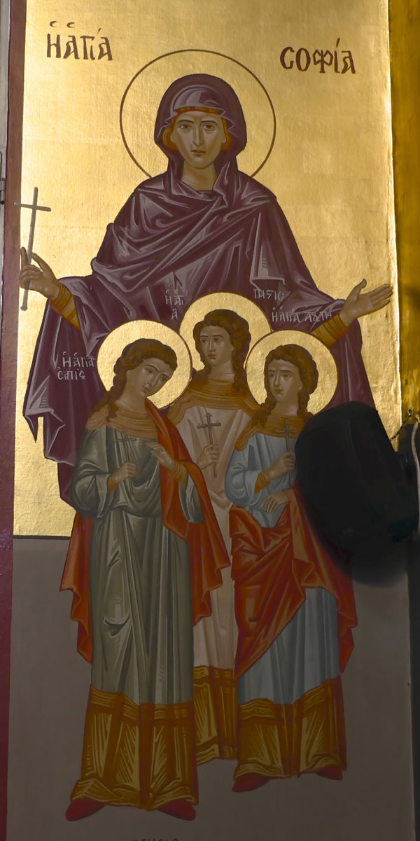 Αγιογραφία της Αγίας Σοφίας και των τέκνων αυτής Πίστεως, Αγάπης και Ελπίδας στο Αριστερό Κλίτος του Ναού μας.