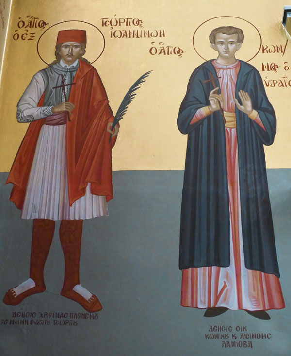 Αγιογραφία του Αγίου Γεωργίου Ιωαννίνων και του Αγίου Κωνσταντίνου του Υδραίου στο Δεξί Κλίτος του Ναού μας.
