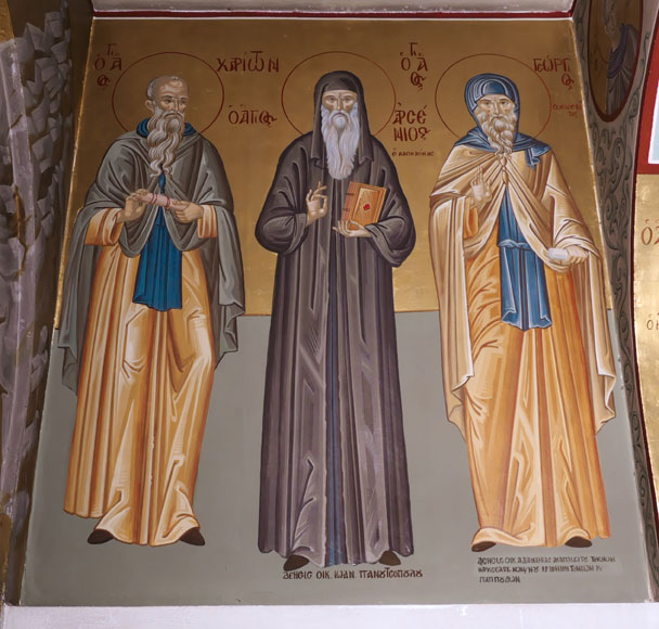 Αγιογραφίες των Αγίων Χαρίτωνα, Αρσενίου και Γεωργίου στον Νάρθηκα του Ναού μας.