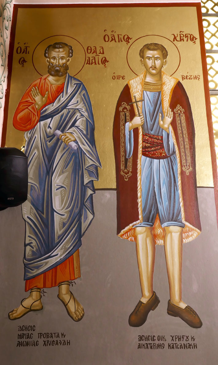 Αγιογραφίες των Αγίων Θαδαίου και Χρήστου στον Νάρθηκα του Ναού μας.