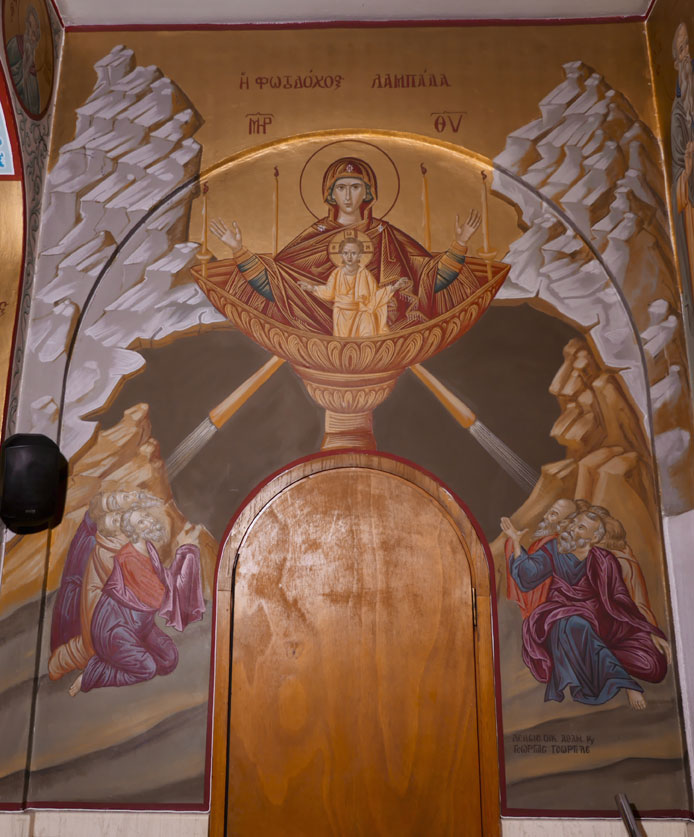 Αγιογραφίες της Παναγίας Φωτοδόχου Λαμπάδας στον Νάρθηκα του Ναού μας.